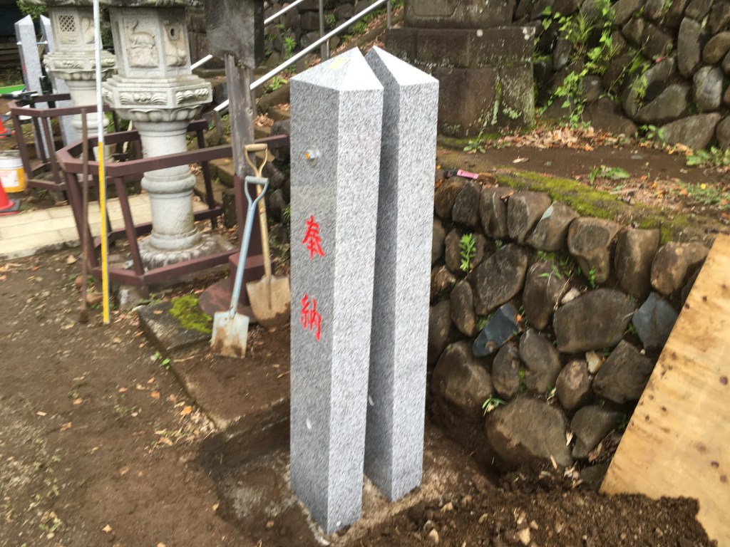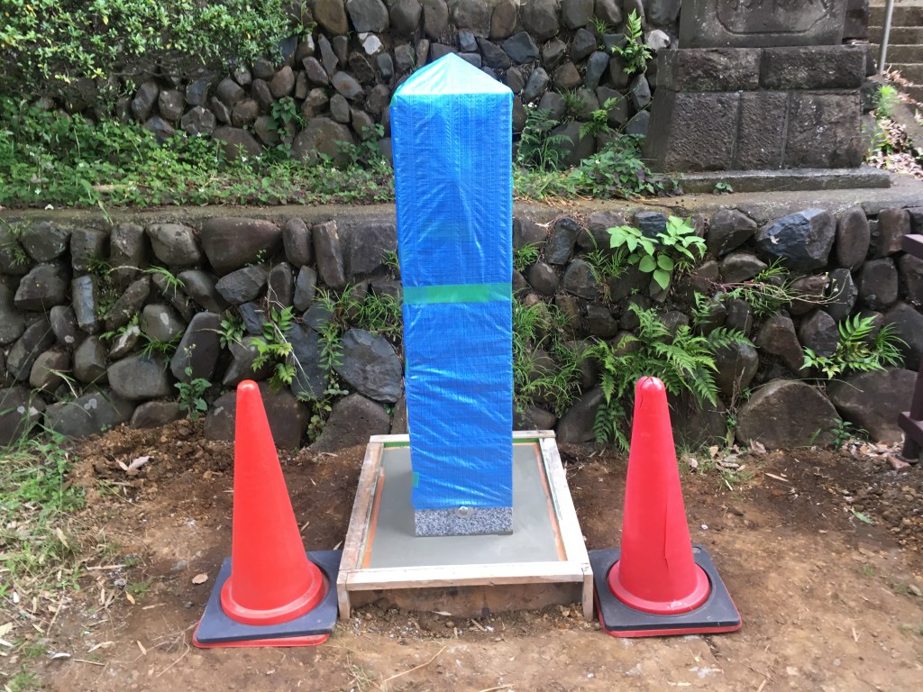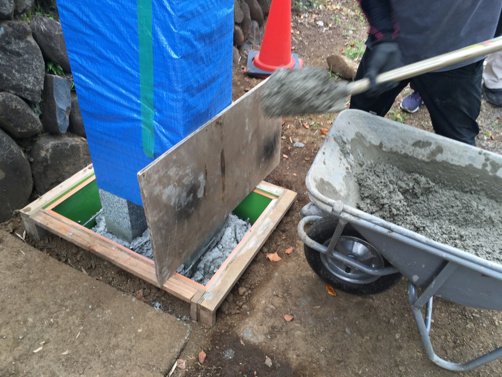 可傾式 幟(のぼり)ポール・石柱建柱 基礎打設工事
